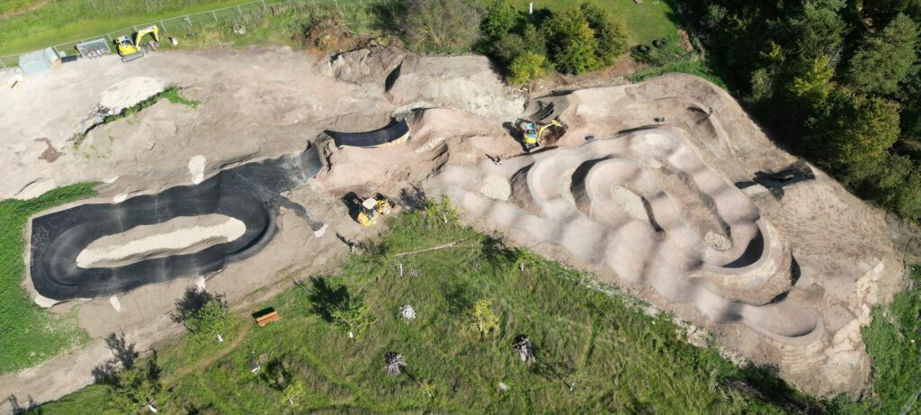 Ein Bikepark wird häufig auch Radsportpark genannt. Darunter versteht man ein speziell gestaltetes Sportgelände für Mountainbiker, bei dem meist verschiedene Abfahrten möglich sind. Unser Bikepark besteht aus drei Teilen, unter anderem einem sogenannten Pumptrack. Auf diesem Rundkurs nutzen die Fahrer auf den wellenformigen Wegen die dazu passende Auf- und Ab-Bewegung des Körpers, um sich mit ihrem Bike so fortzubewegen, dass sie dabei idealerweise kaum mit den Pedalen nachhelfen müssen. Auf extra dafür angelegten Rampen können Sprünge absolviert werden.