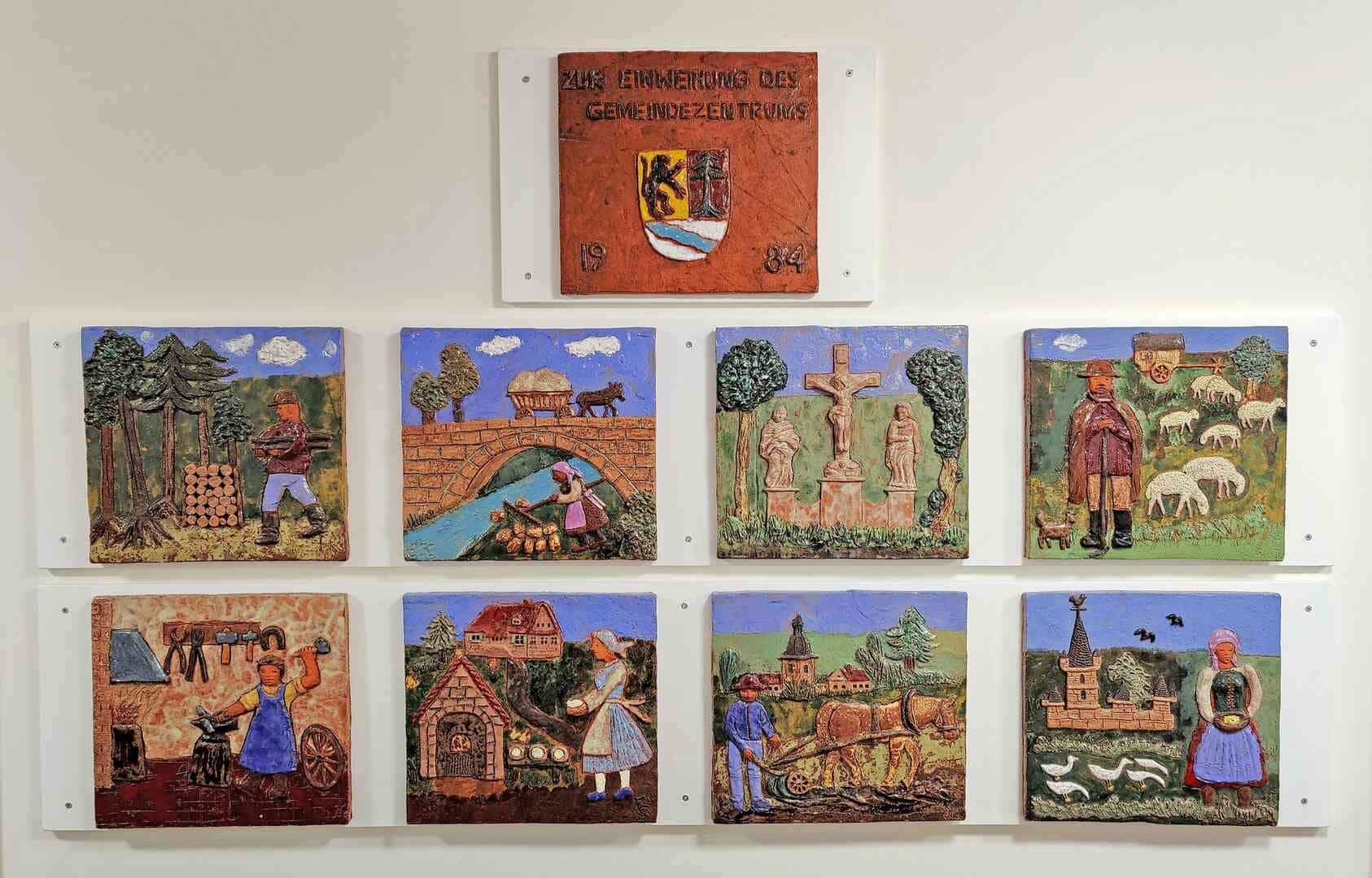 Im Obergeschoss des Rathauses befindet sich der modern ausgestattete Sitzungssaal, der von Gemeinderat und Ausschüssen genutzt wird und darüber hinaus auch als Trauzimmer dient.