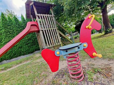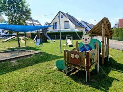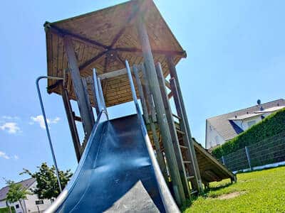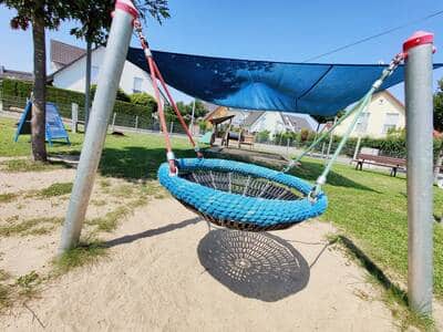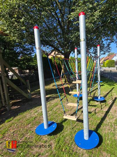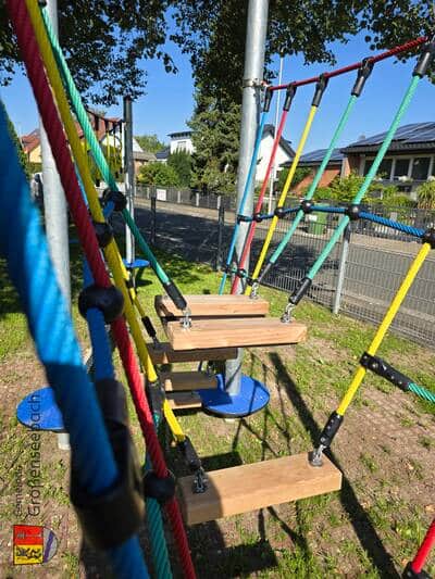 Der Spielplatz wurde am 06.08.24 nach umfangreicher Sanierung und Erweiterung durch neue Spielgeräte wie etwa die Balancierbrücke wiedereröffnet.